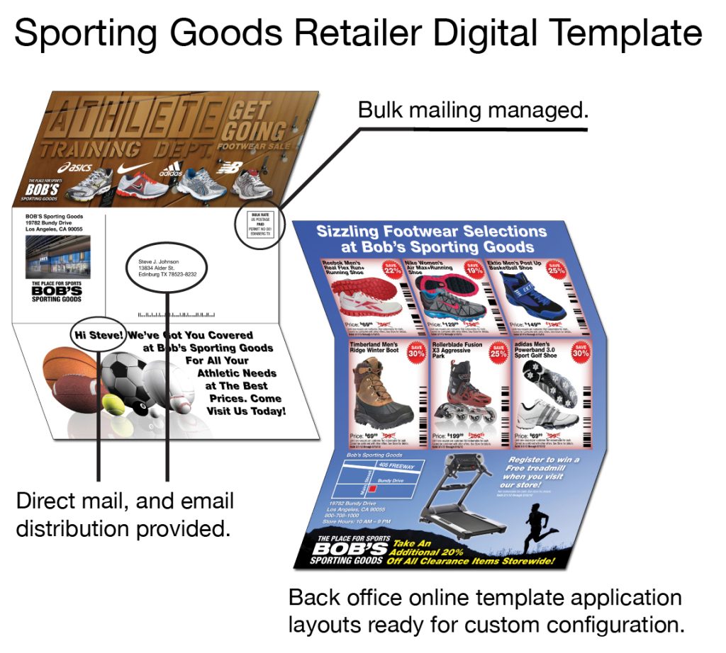 Custom print and digital mailings are created in retailers’ back office using prepared online webLSM assembly templates, as shown below. The platform provides full-service, including both printing and mailing of digital and print materials.