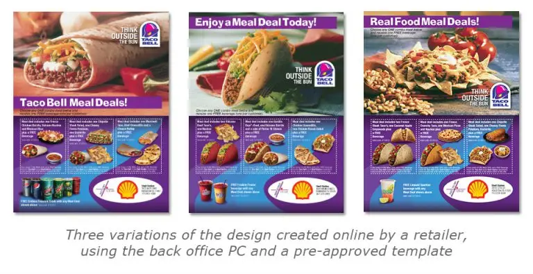 A digital system enabled retailers to design and execute localized promotions from their back-office PCs. Templates provided tools for creating mailers, flyers, and other materials for co-brand campaigns. Costs were reduced through gang-run printing and integrated distribution via Shell & Texaco’s commercial websites.Local Campaigns: